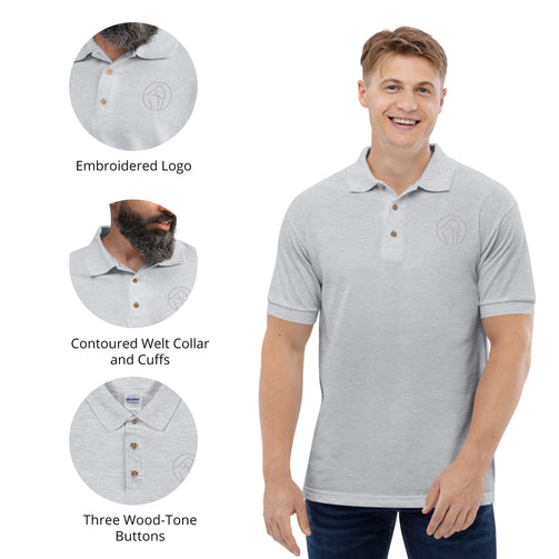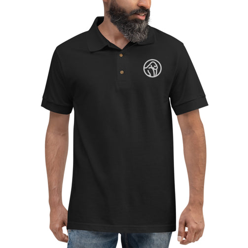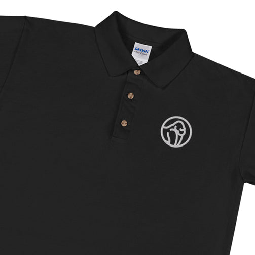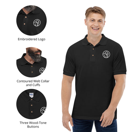 Soulful Silverback Men's Polo Shirt with White Embroidered Logo, Classic Fit Collared Short Sleeve, Preshrunk Cotton